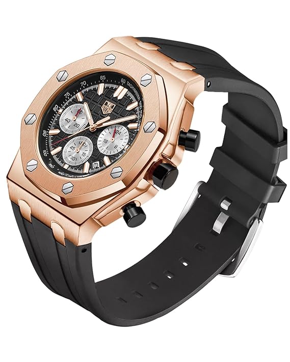 • 【Luxury and Classy Design】Stylish Stainless gold-tone case and silicone strap, an ever-practical date display window at 4:30 o’clock and luminous hands, the watch showcases men’s masculinity and glamour. The refined watch graces the men’s everyday and dress wear.